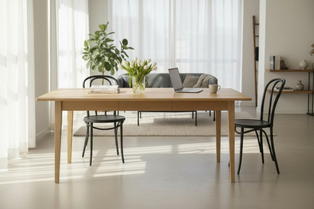 Auf Wunsch kann der Tisch mit einer praktischen Schublade ausgestattet werden – ideal für zusätzlichen Stauraum.
